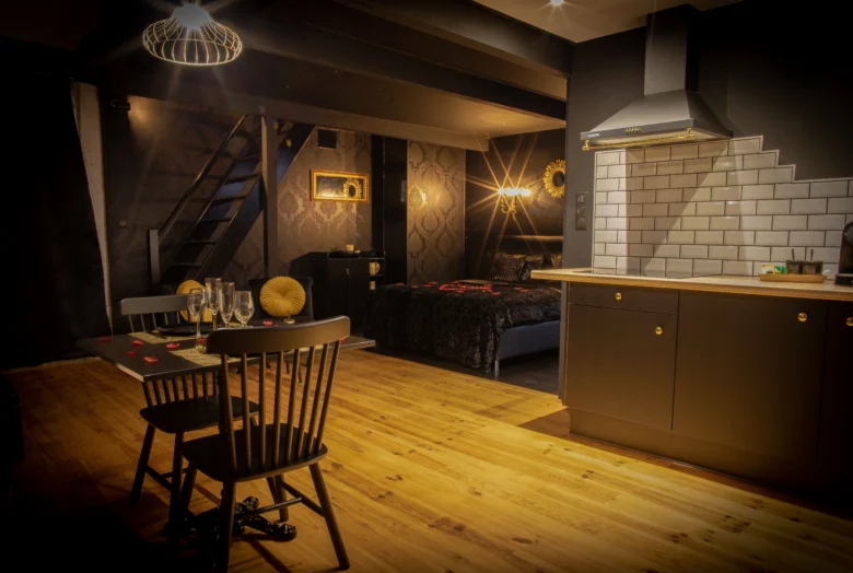 Entrez dans un univers romantique, chic et sensuel ! Nichée au cœur d’un petit village pittoresque, L’évéa est la destination idéale pour un couple qui souhaite s’évader, casser la routine, et rompre avec le quotidien. Un lieu insolite conçu pour susciter l’émotion, dans une ambiance invitant au bien-être et au lâcher-prise. Des équipements entièrement privatifs et haut de gamme en accès illimité (Balnéo & Sauna inclus), pour passer une nuit de charme entre romantisme et détente ! Et si la curiosité vous pousse à monter sur la mezzanine mansardée, vous y découvrirez un univers qui ne manquera pas de réveiller vos 50 nuances de sensualité…