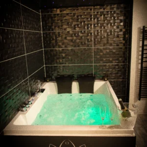 Découvrez notre suite romantique, où luxe et confort se rencontrent pour une escapade inoubliable. Profitez d’un lit queen-size moelleux, d’un spa et d’un sauna privatifs. Avec un service attentionné et des installations modernes, laissez-vous séduire par l’ambiance intime de notre suite romantique.